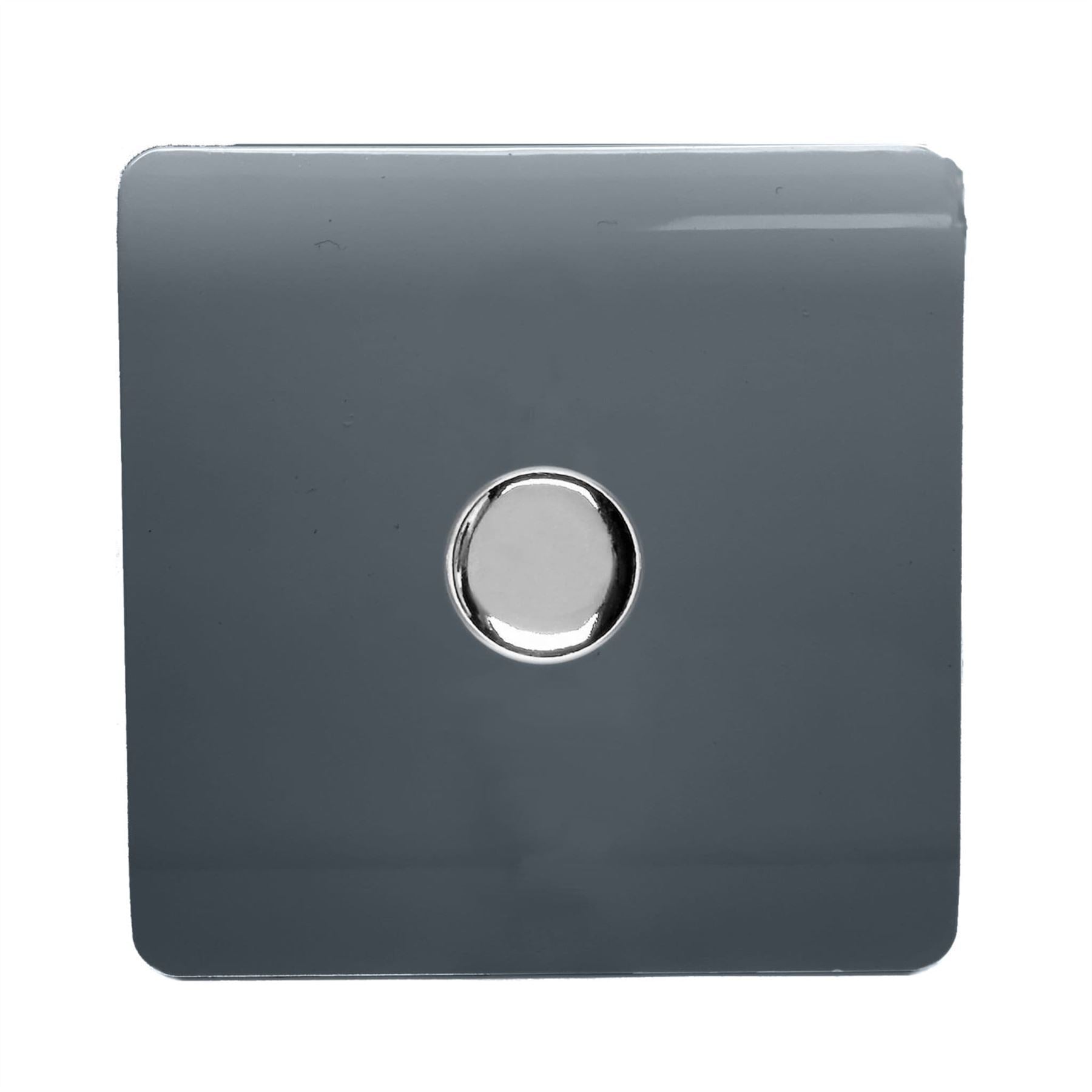 Trendi 1 Gang 2 Way 240V 100w LED Dimmer Screwless Raised Front Plate Plastic Artistic Modern Glossy 10 Amp Chrome Single Electrical Wall Light Switch in Warm Grey - ART-LDMWG