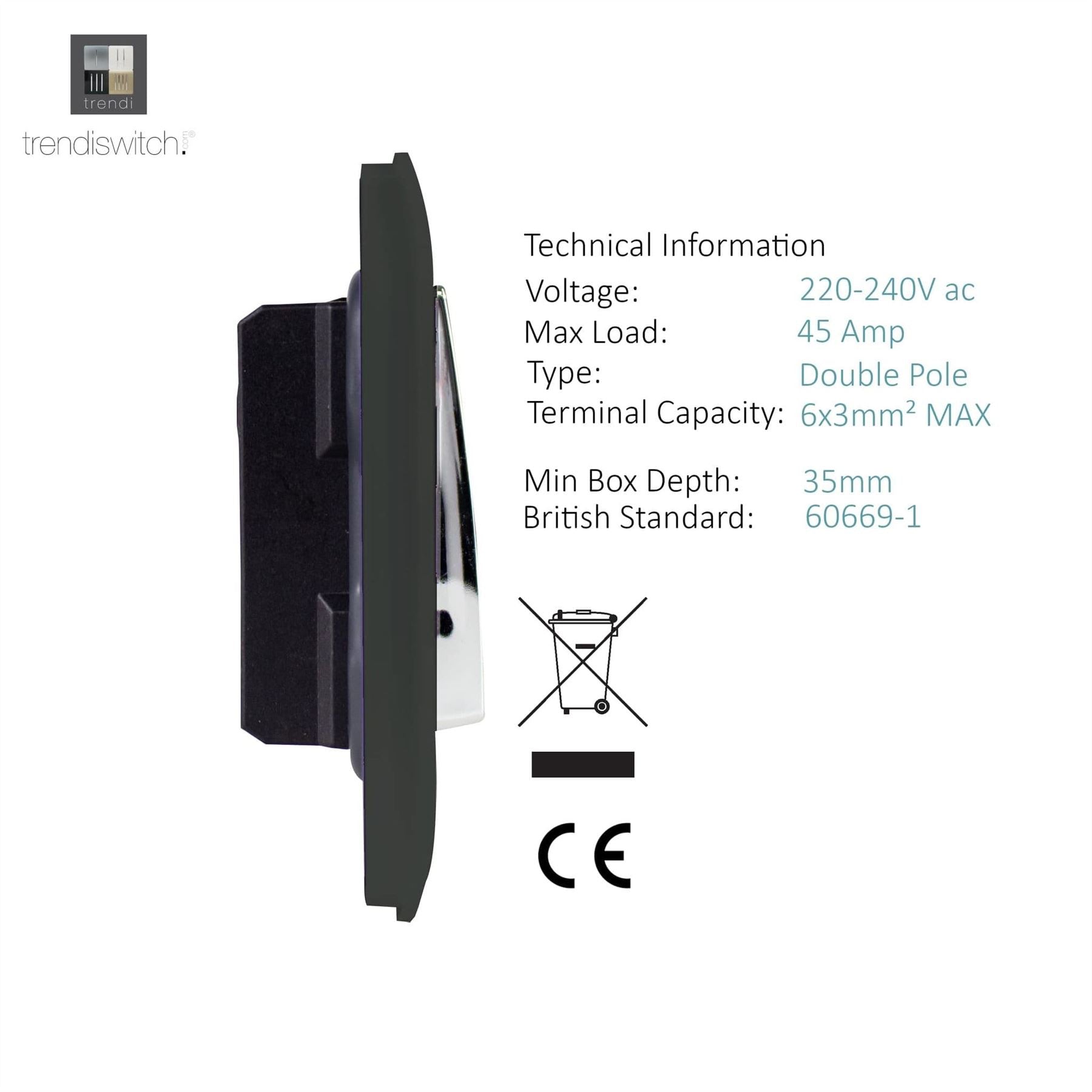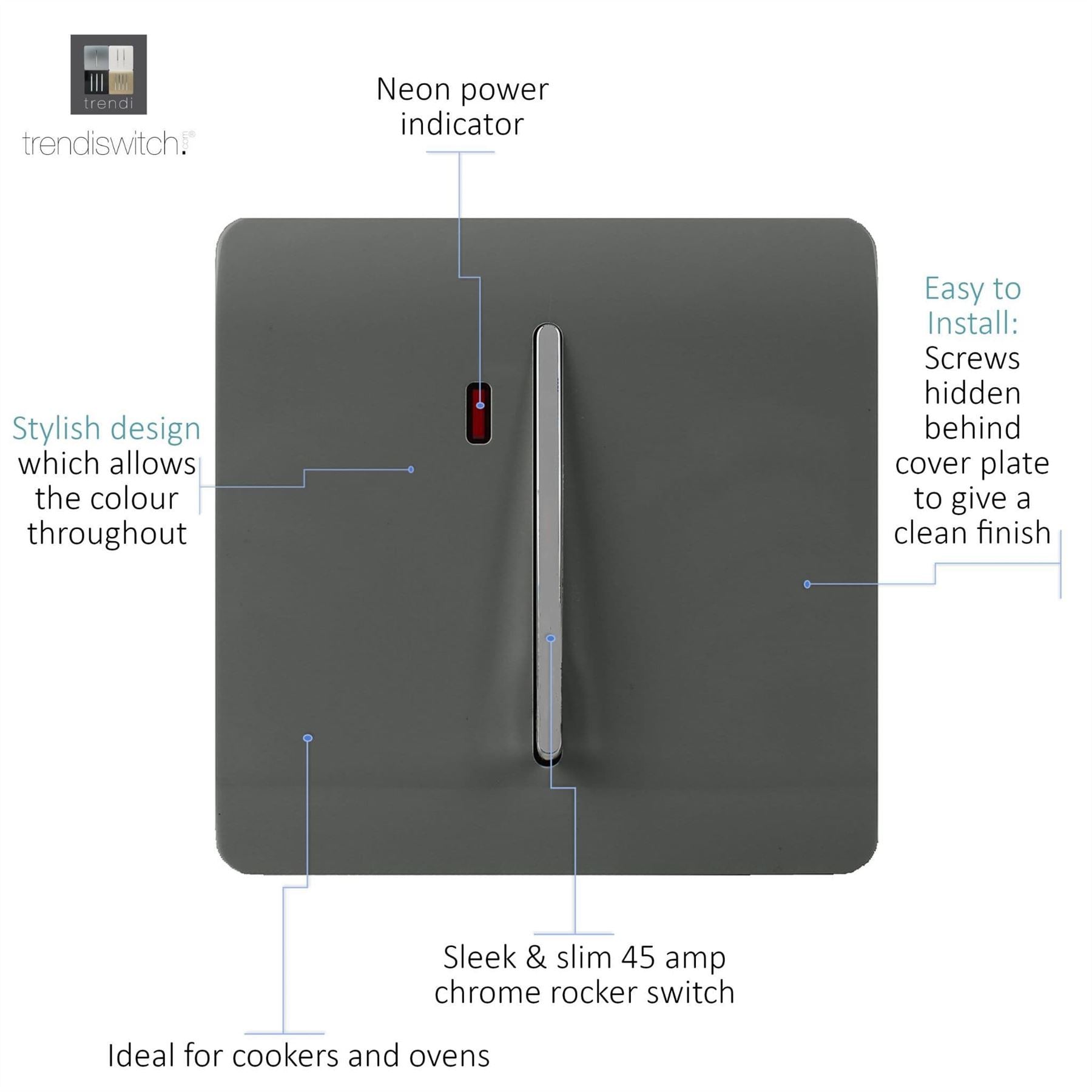 Trendi Switch 1 Gang 45 Amp Cooker Switch with Neonin Charcoal Grey