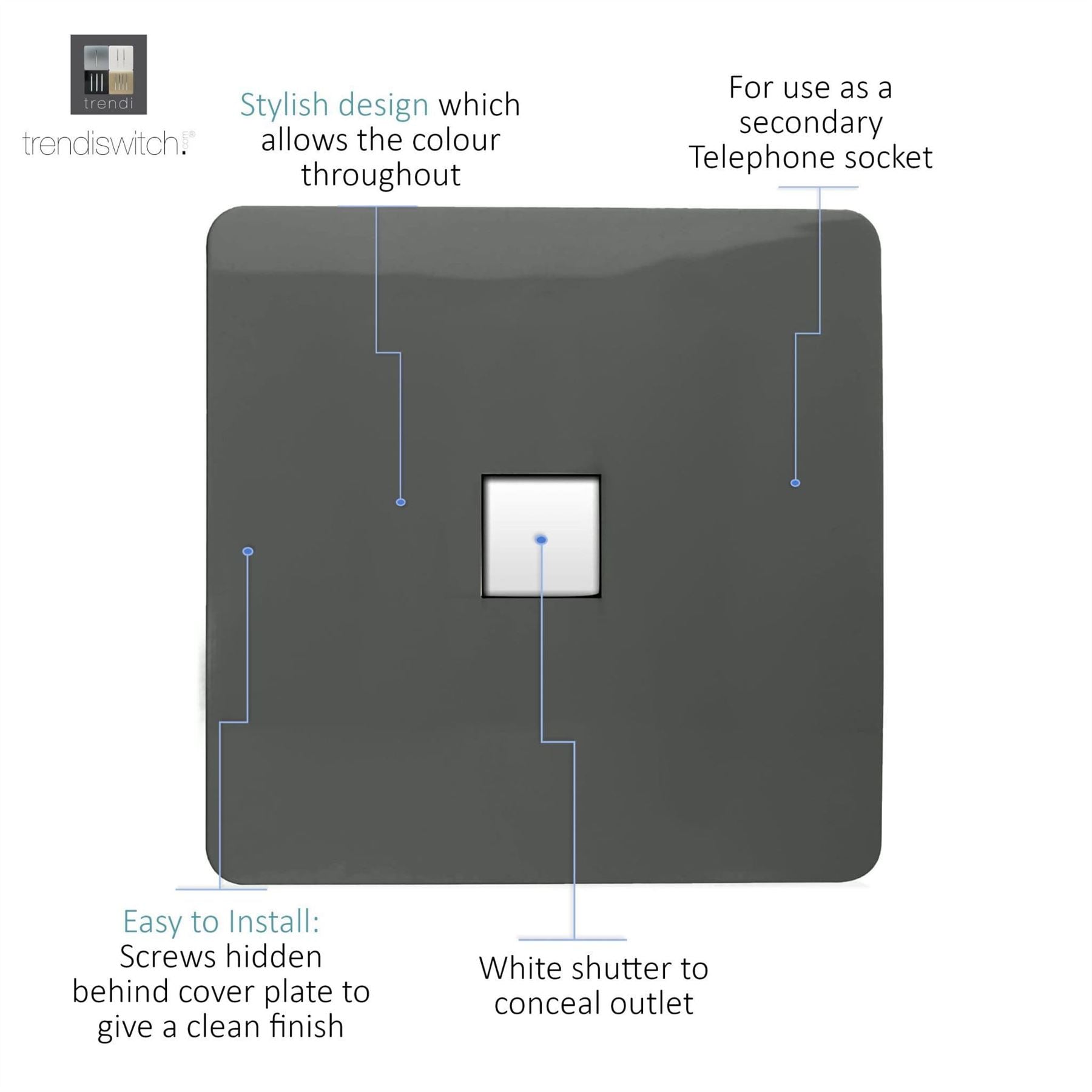 Trendi Switch 1 Gang Cat 3 Telephone Slave Socketin Charcoal Grey