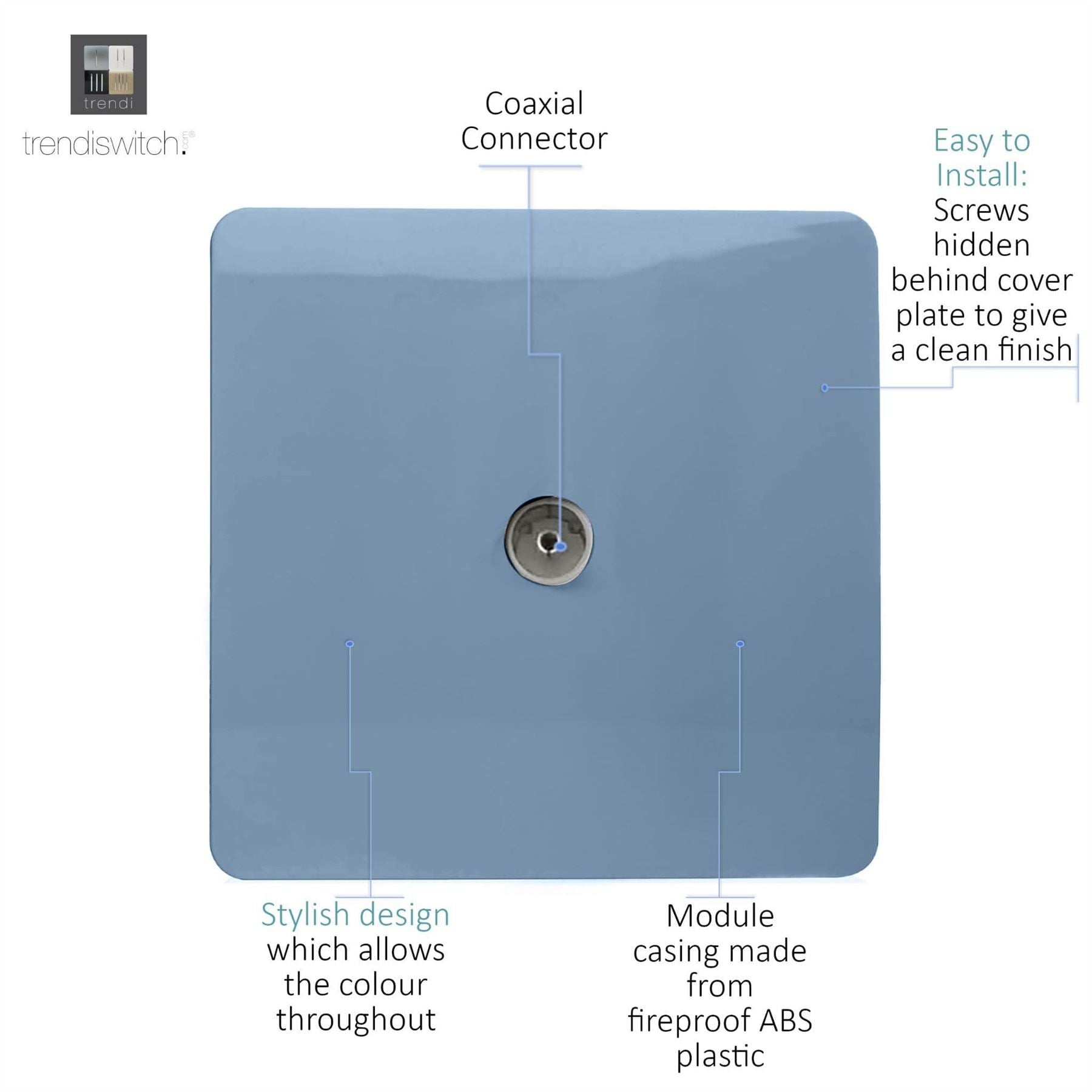 Trendi Switch 1 Gang Female Co-Axial Television Socketin Sky Blue