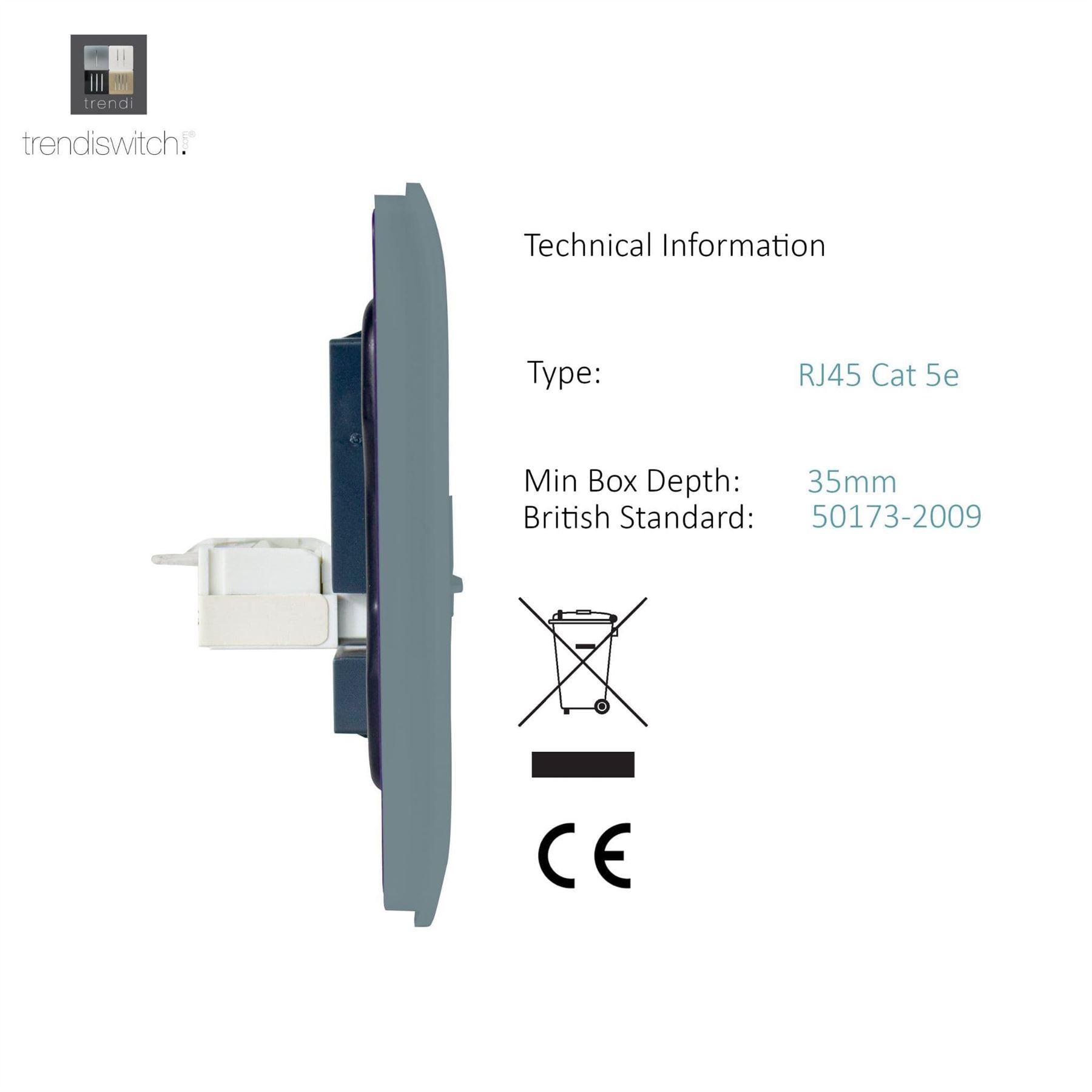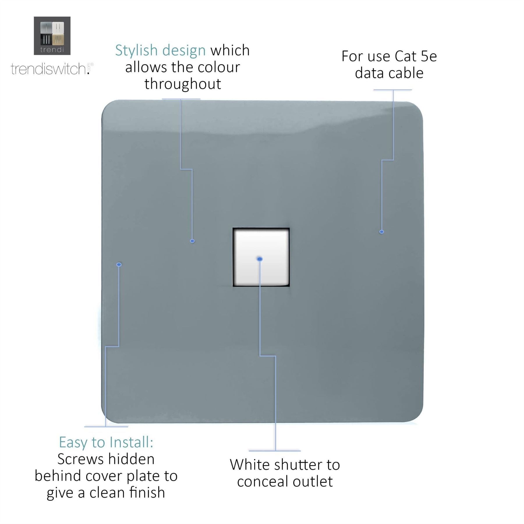 Trendi Switch 1 Gang RJ45 Cat 5e PC Ethernet Socketin Cool Grey