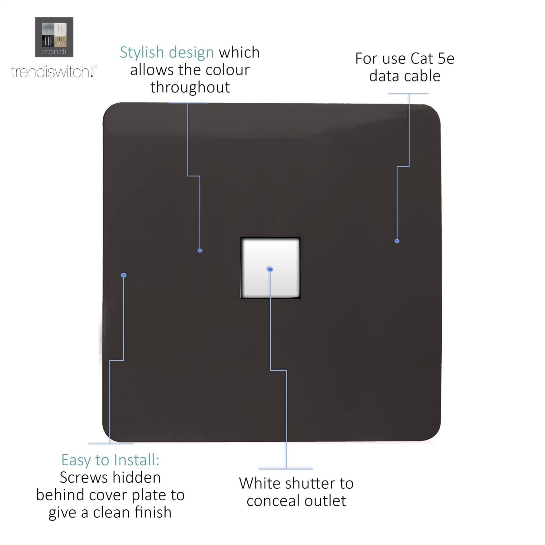 Trendi Switch 1 Gang RJ45 Cat 5e PC Ethernet Socketin Dark Mocha Brown
