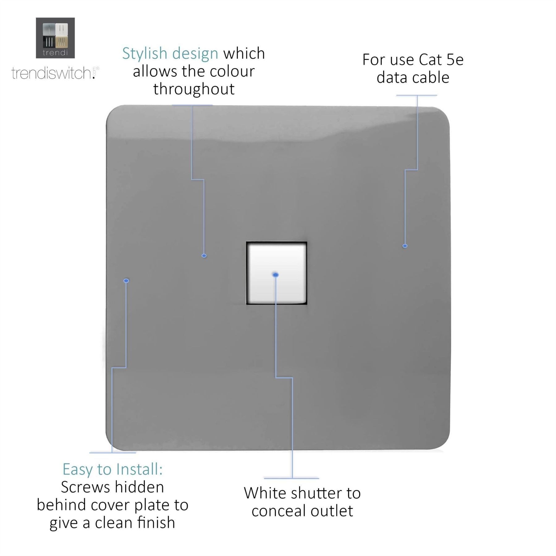 Trendi Switch 1 Gang RJ45 Cat 5e PC Ethernet Socketin Light Grey