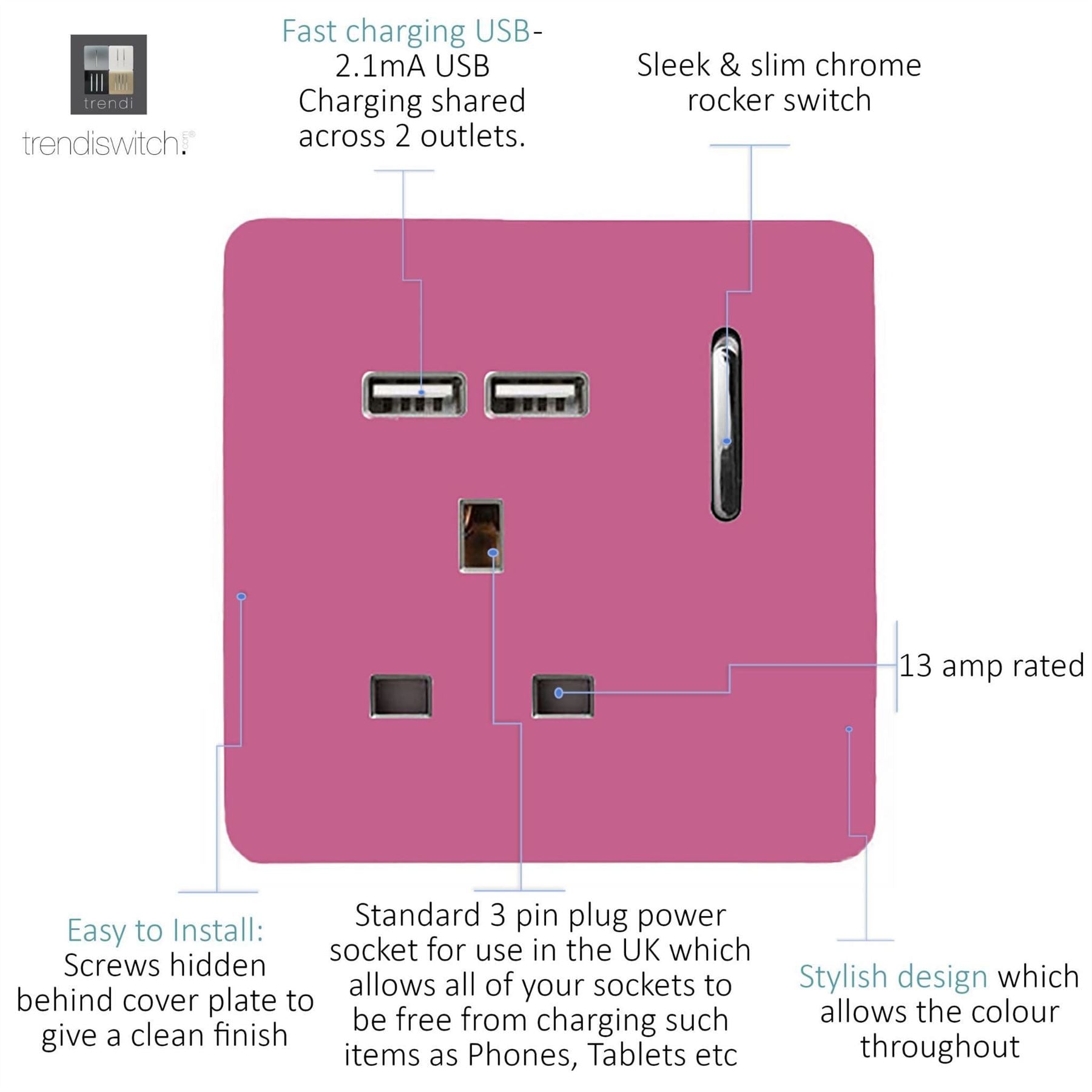 Trendi Switch 1 Gang USB 2100mA Plug Socketin Candy Pink
