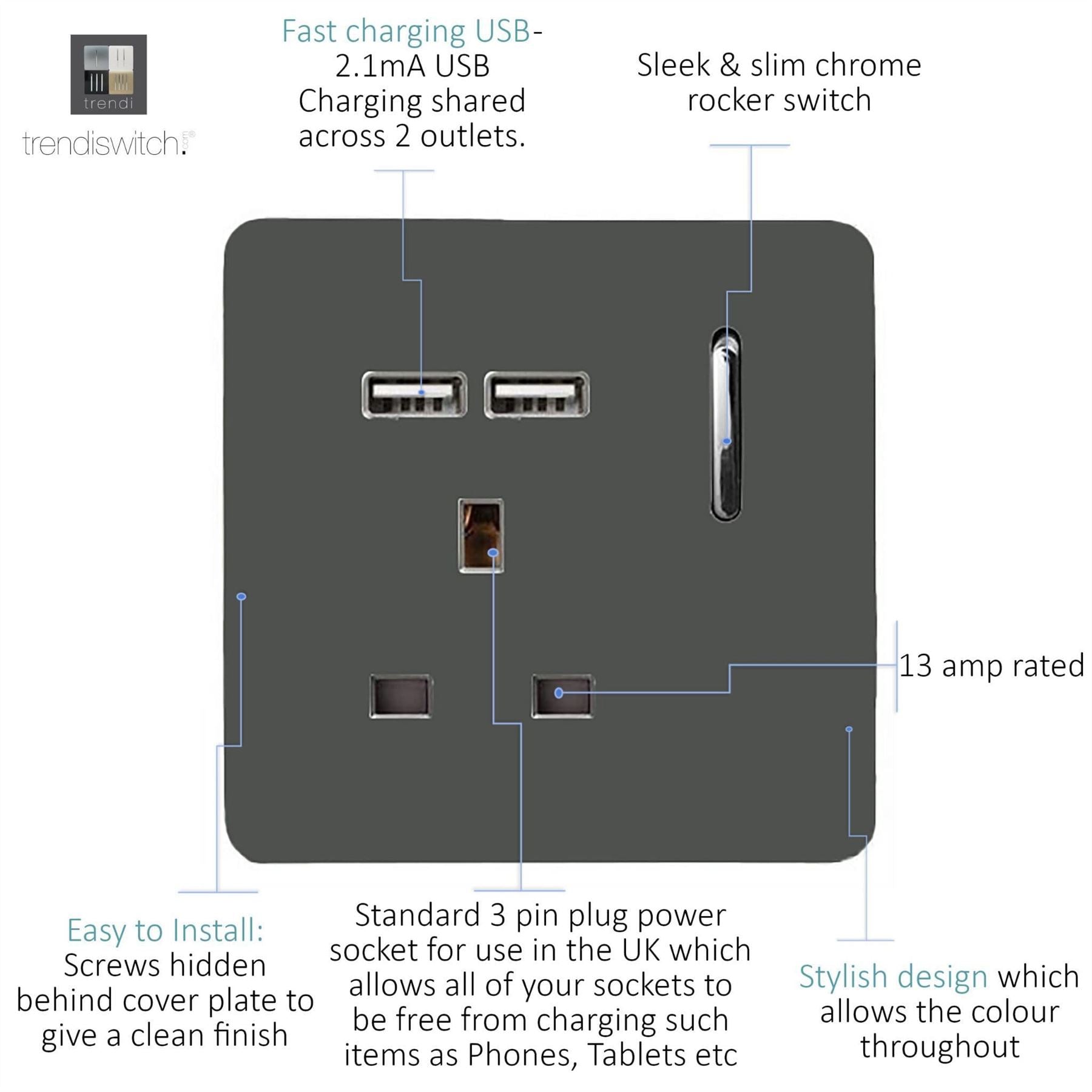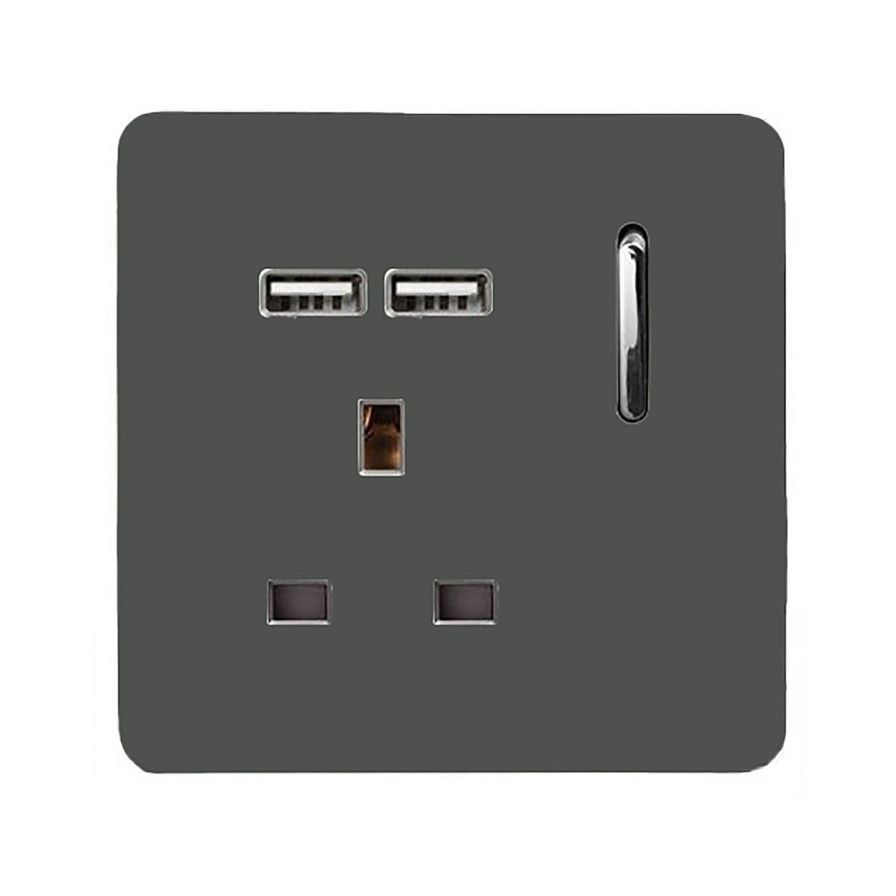 Trendi Switch 1 Gang USB 2100mA Plug Socketin Charcoal Grey