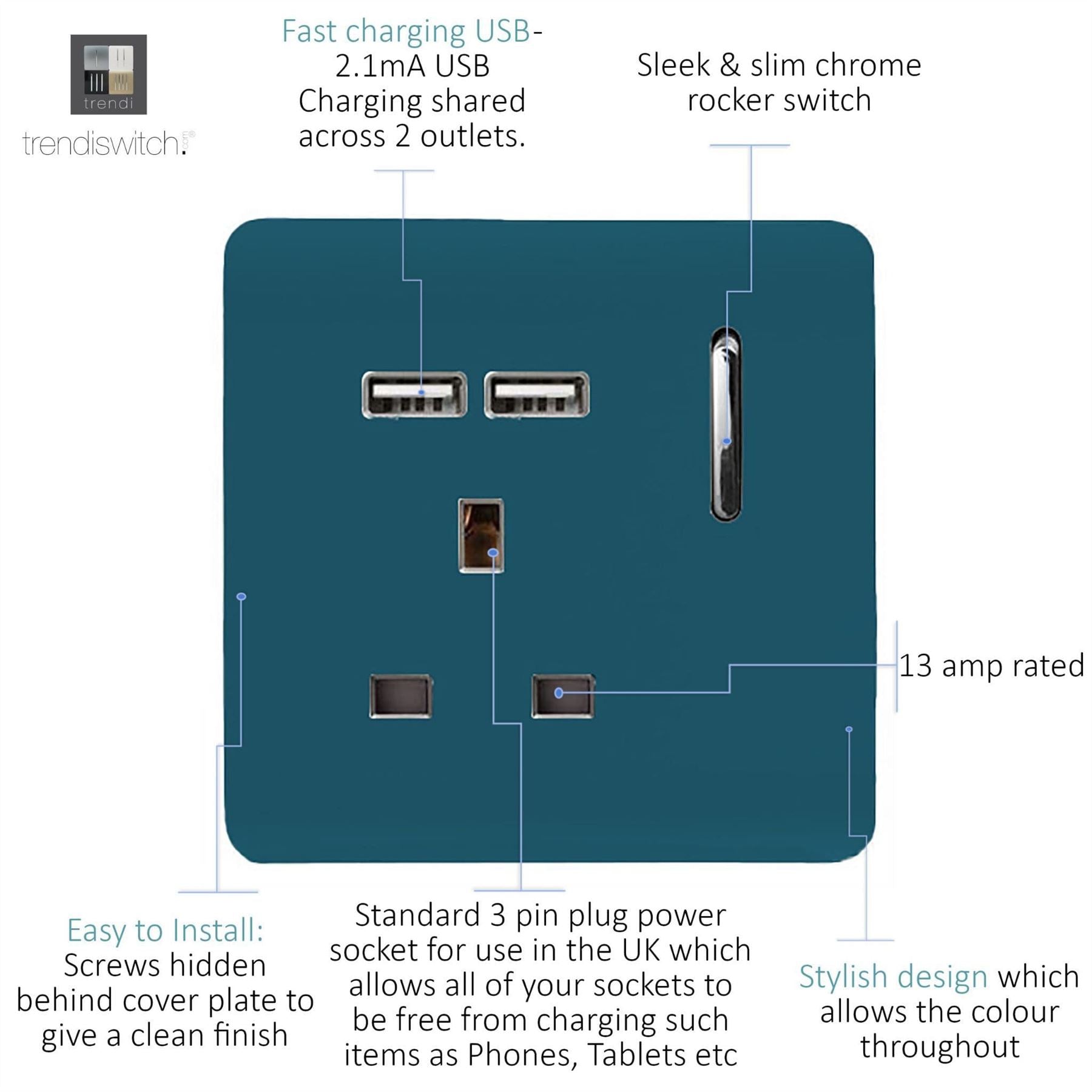 Trendi Switch 1 Gang USB 2100mA Plug Socketin Ocean Blue