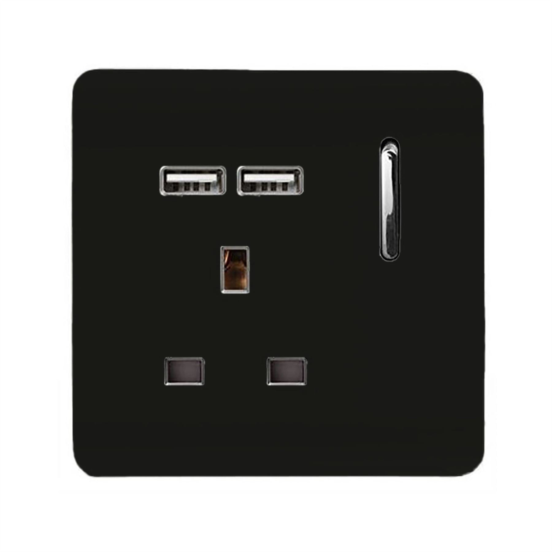 The Trendi Switch range of 1 gang 13 amp USB plug sockets comprise of a sleek chrome rocker switch on a "screwless" plate displaying the complete colour of the products. This is supported by a back frame that houses the screw holes & module for the product to be installed into compatible back boxes and wiring.