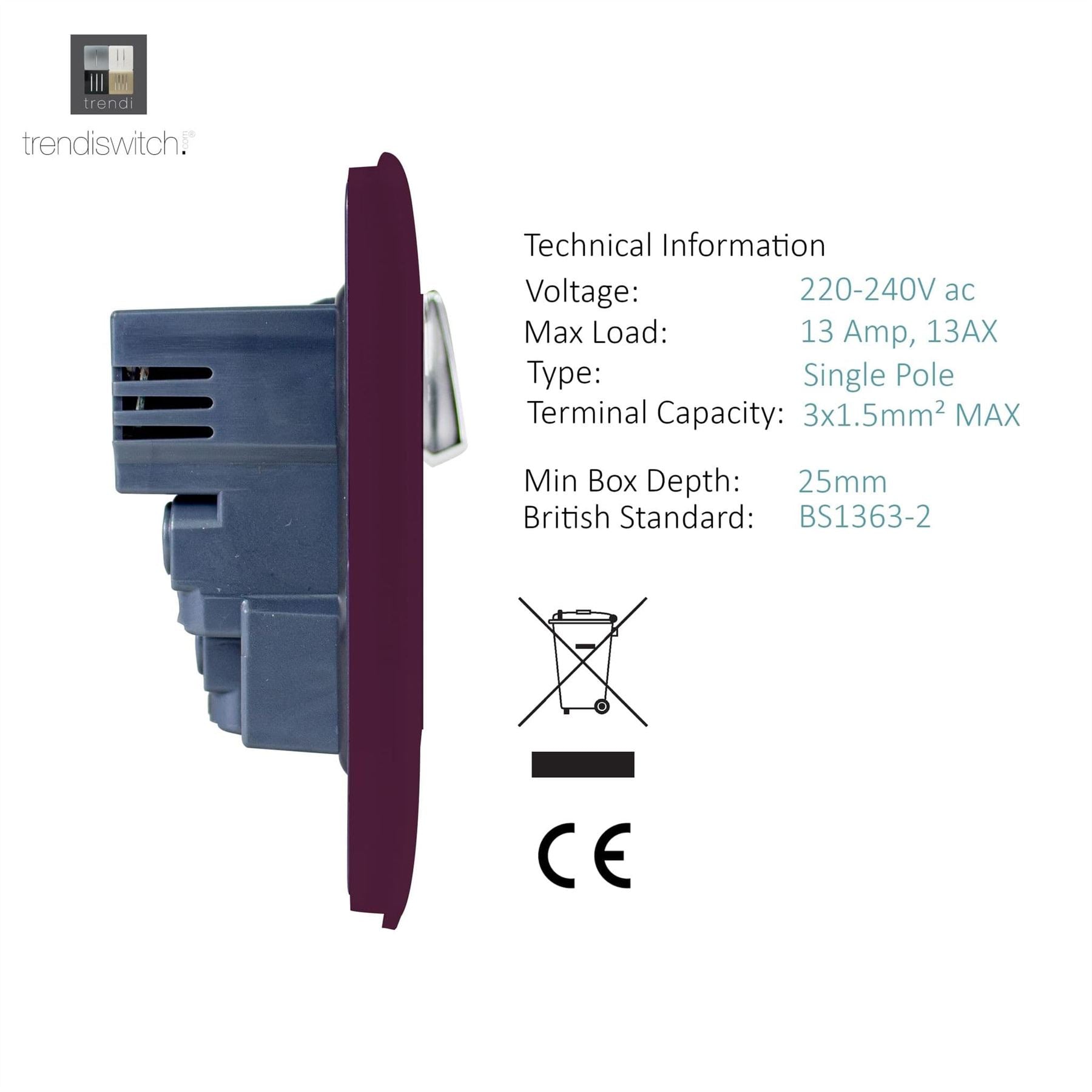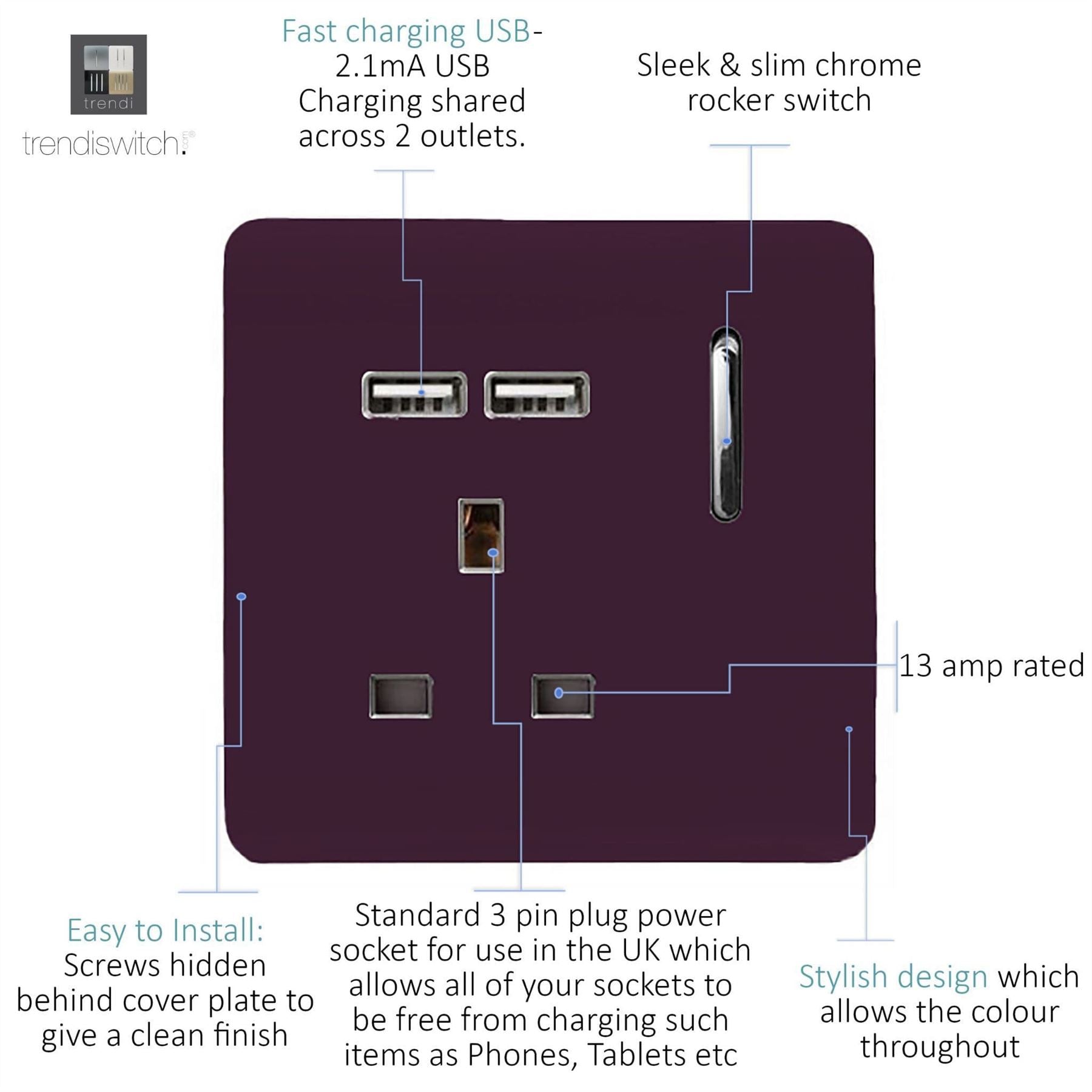 Trendi Switch 1 Gang USB 2100mA Plug Socketin Plum Purple