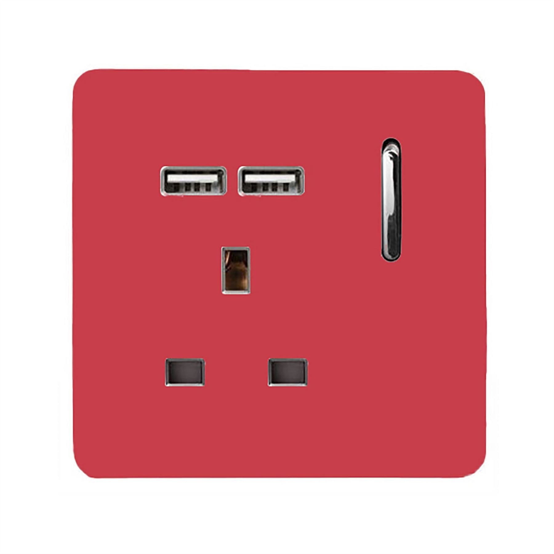Trendi Switch 1 Gang USB 2100mA Plug Socketin Strawberry Red