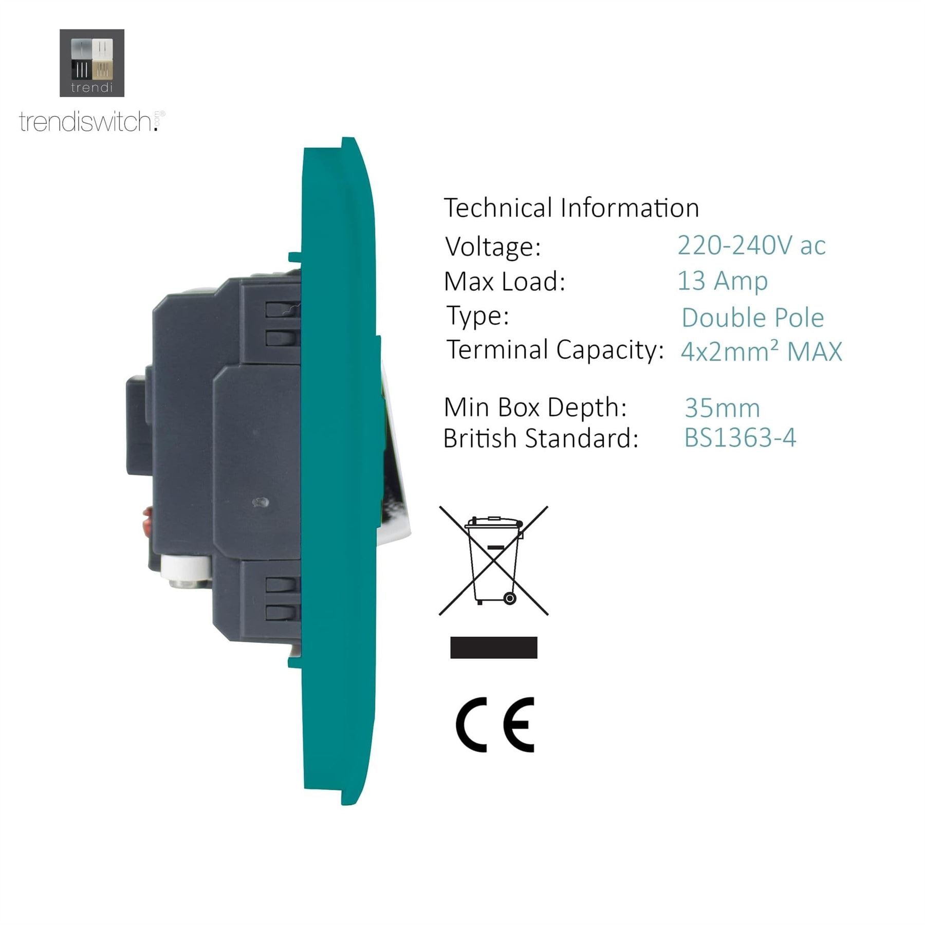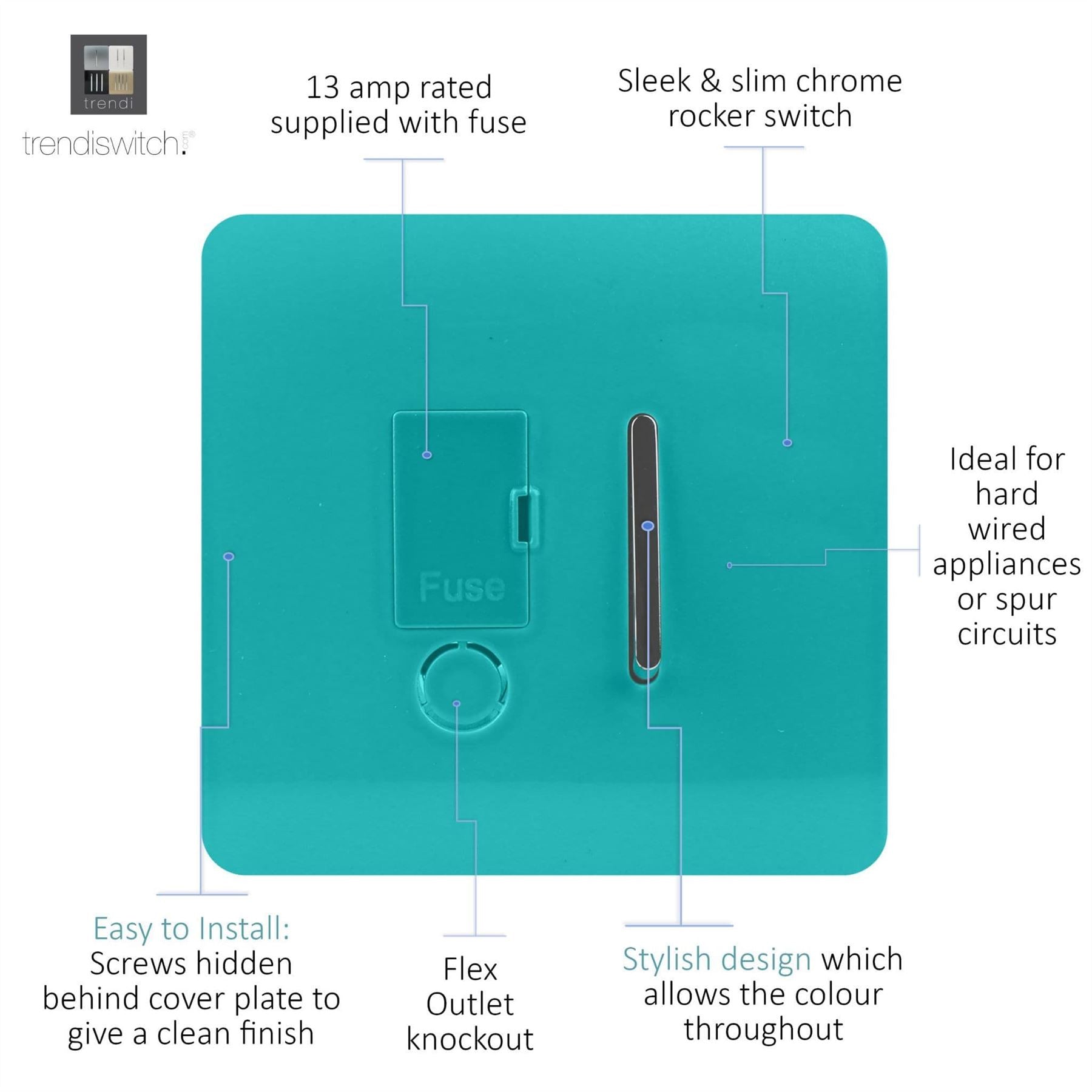 Trendi Switch 13 Amp Fused Spur with Flex Outletin Bright Teal