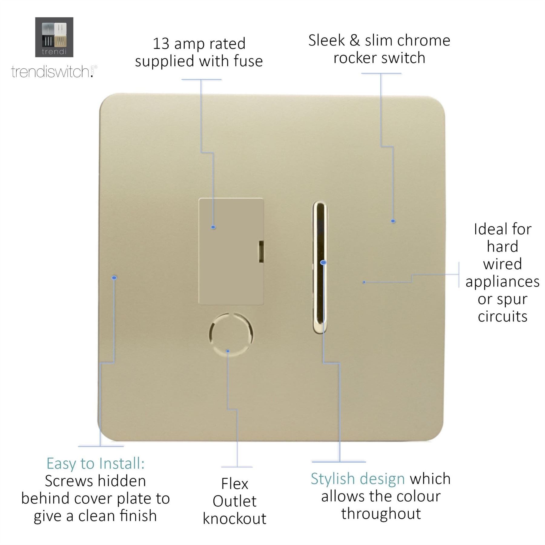 Trendi Switch 13 Amp Fused Spur with Flex Outlet in Champagne Gold