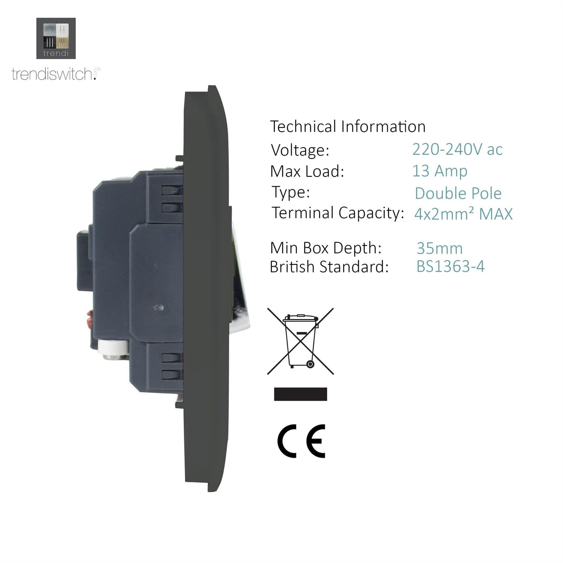 Trendi Switch 13 Amp Fused Spur with Flex Outletin Charcoal Grey