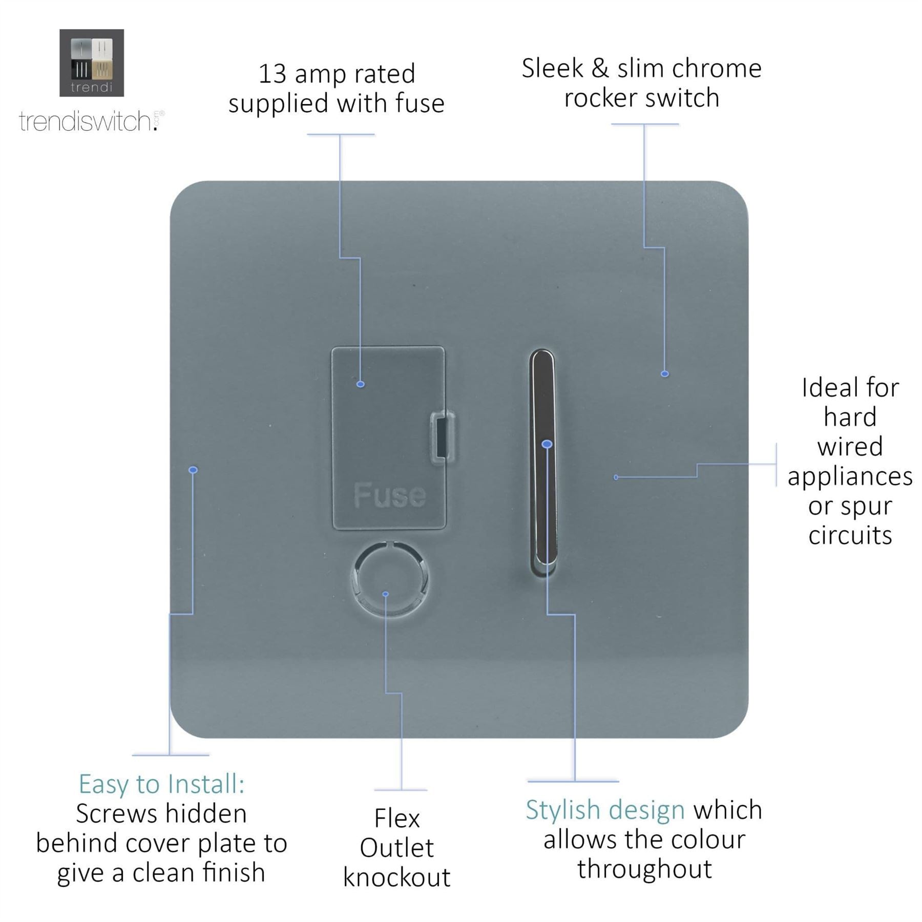 Trendi Switch 13 Amp Fused Spur with Flex Outletin Cool Grey