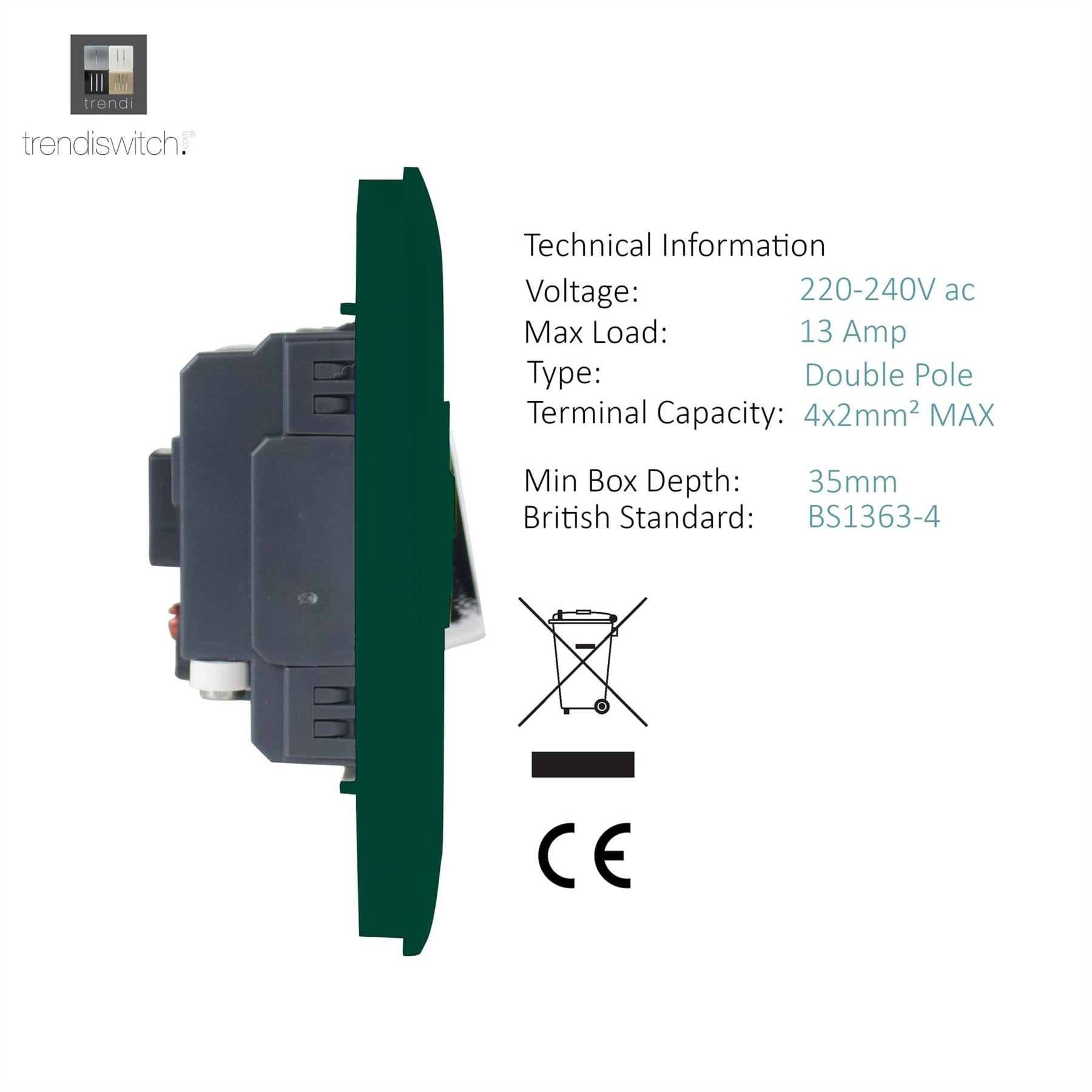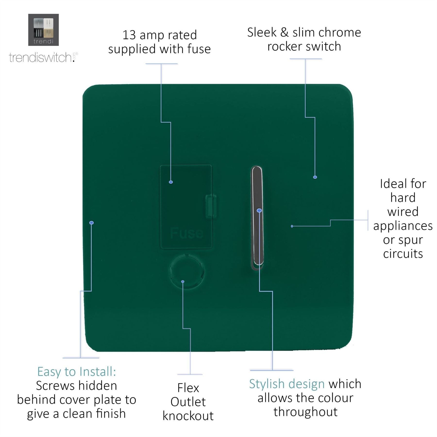 Trendi Switch 13 Amp Fused Spur with Flex Outletin Dark Forest Green