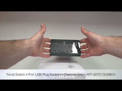 Trendi Switch 2 Gang 4 Port USB 2100mA Plug Socket in Charcoal Grey