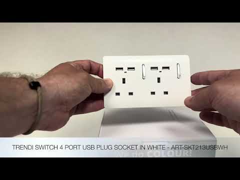 The Trendi Switch range of 2 gang 13 amp USB plug sockets comprise of a sleek chrome rocker switch on a "screwless" plate displaying the complete colour of the products. This is supported by a back frame that houses the screw holes & module for the product to be installed into compatible back boxes and wiring.
