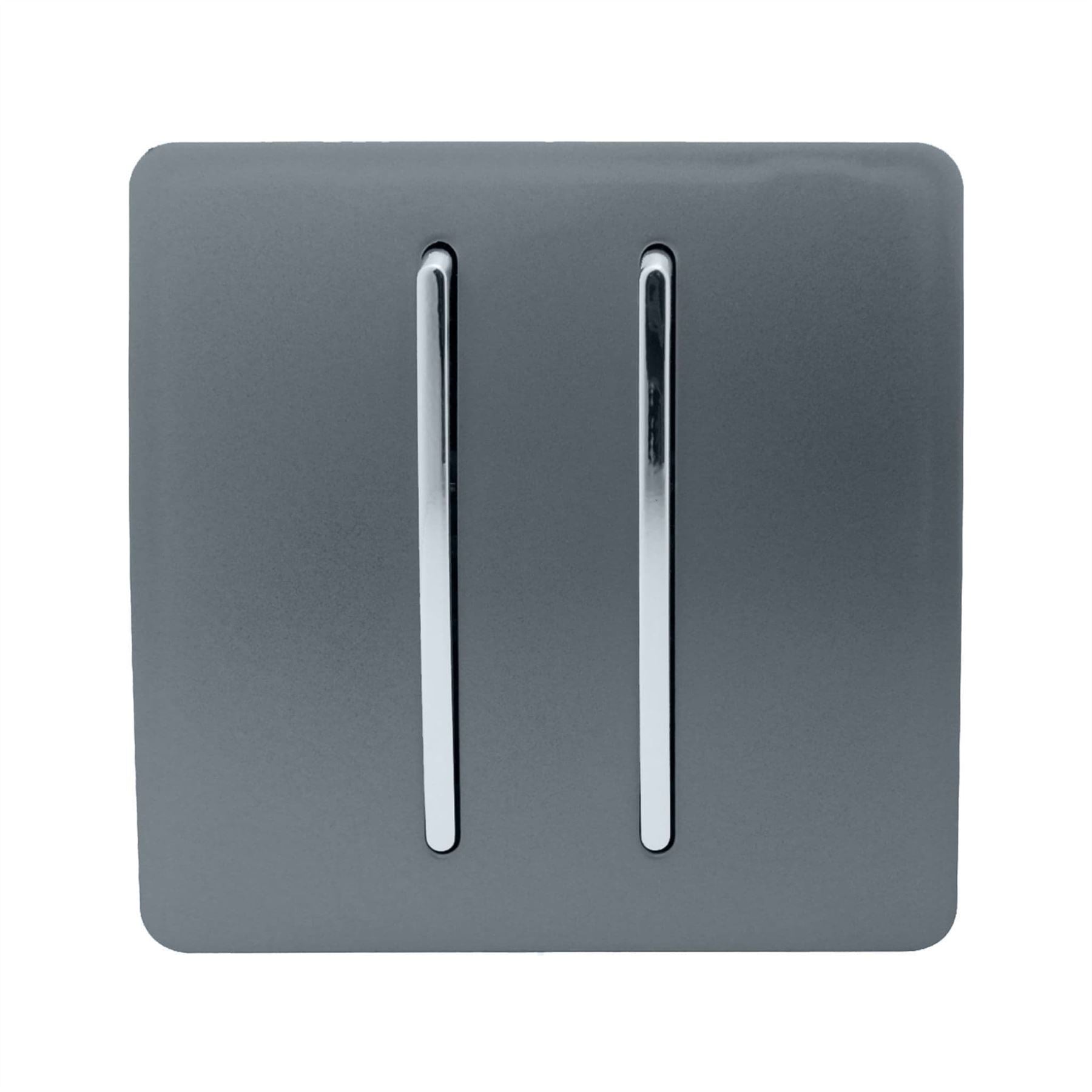 Trendi Switch 2 Gang Intermediate Rocker Light Switch in Warm Grey
