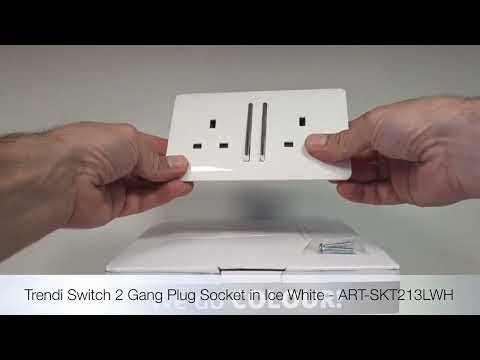 The Trendi Switch range of 2 gang 13 amp plug sockets comprise of a sleek chrome rocker switch on a "screwless" plate displaying the complete colour of the products. This is supported by a back frame that houses the screw holes & module for the product to be installed into compatible back boxes and wiring.