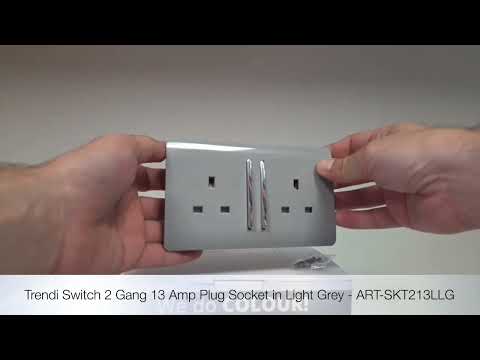 The Trendi Switch range of 2 gang 13 amp plug sockets comprise of a sleek chrome rocker switch on a "screwless" plate displaying the complete colour of the products. This is supported by a back frame that houses the screw holes & module for the product to be installed into compatible back boxes and wiring.