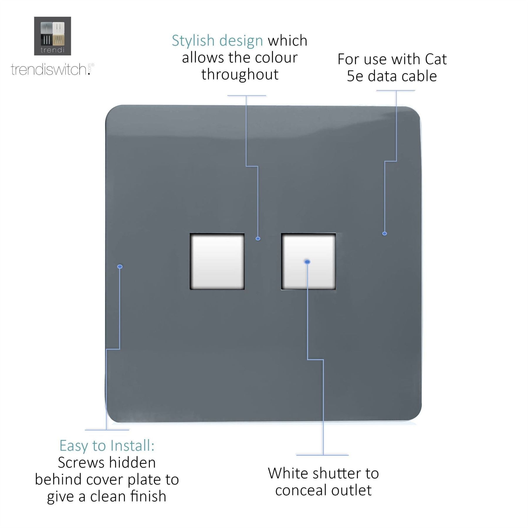 Trendi Switch 2 Gang RJ45 Cat 5e PC Ethernet Socketin Warm Grey