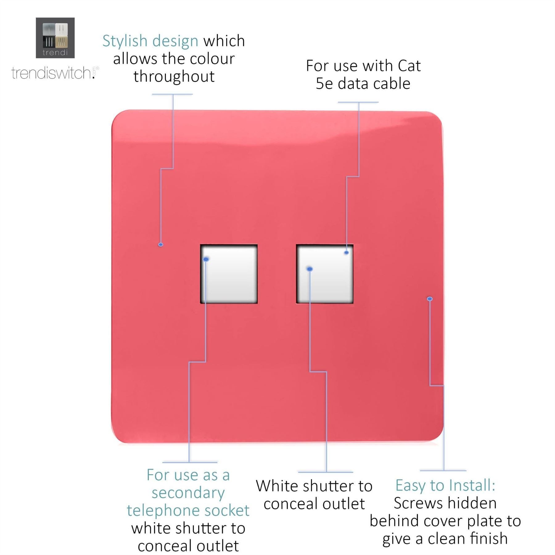 Trendi Switch 2 Gang RJ45 Cat 5e PC Ethernet & Telephone Slave Sockets in Strawberry Red