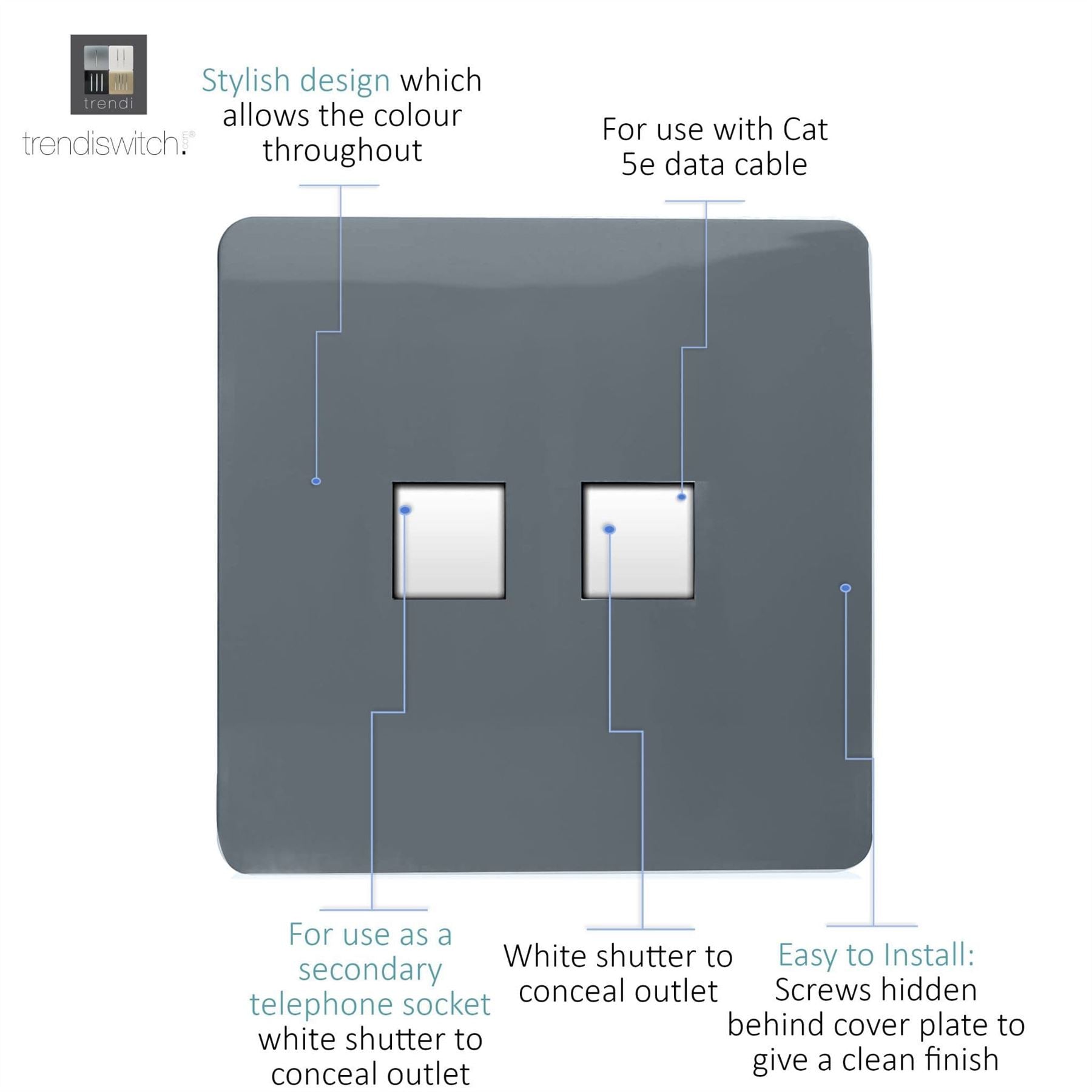 Trendi Switch 2 Gang RJ45 Cat 5e PC Ethernet & Telephone Slave Sockets in Warm Grey