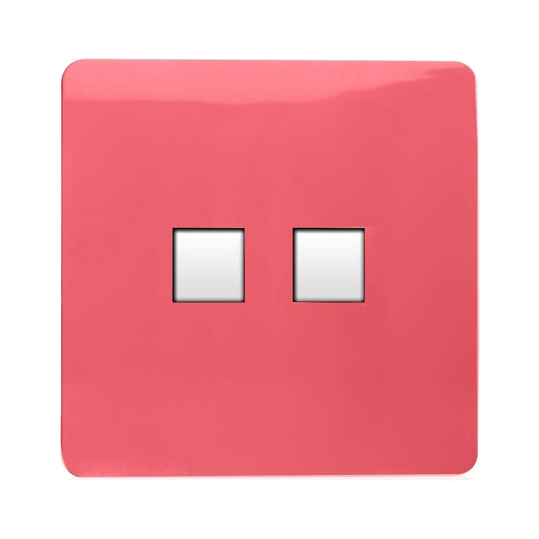 Trendi Switch 2 Gang RJ45 Cat 6 Modern Designer PC Ethernet Socketin Strawberry Red