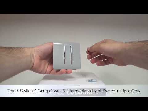 The Trendi Switch range of 2 gang 1 or 2 way & intermediate (also known as 3 way) rocker light switches comprise of a sleek chrome rocker switch on a "screwless" plate displaying the complete colour of the products. This is supported by a back frame that houses the screw holes & module for the product to be installed into compatible back boxes and wiring.