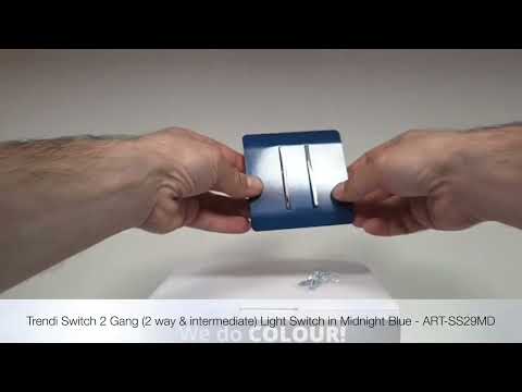 The Trendi Switch range of 2 gang 1 or 2 way & intermediate (also known as 3 way) rocker light switches comprise of a sleek chrome rocker switch on a "screwless" plate displaying the complete colour of the products. This is supported by a back frame that houses the screw holes & module for the product to be installed into compatible back boxes and wiring.