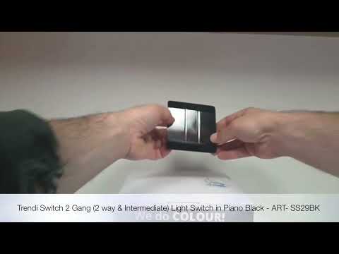 The Trendi Switch range of 2 gang 1 or 2 way & intermediate (also known as 3 way) rocker light switches comprise of a sleek chrome rocker switch on a "screwless" plate displaying the complete colour of the products. This is supported by a back frame that houses the screw holes & module for the product to be installed into compatible back boxes and wiring.