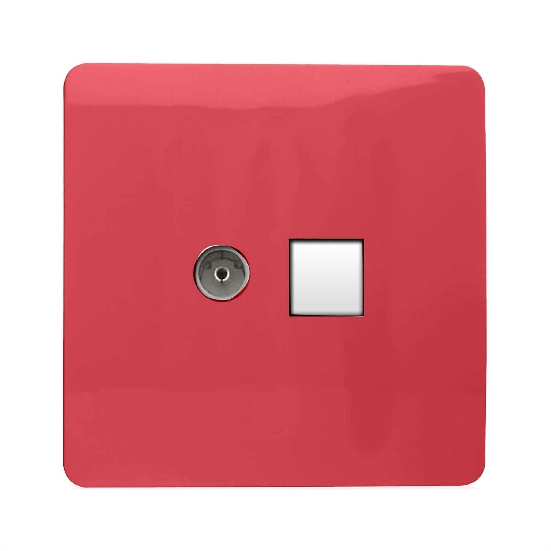 Trendi Switch 2 Gang TV Co-Axial & RJ45 Cat 6 Modern Designer PC Ethernet Socketsin Strawberry Red