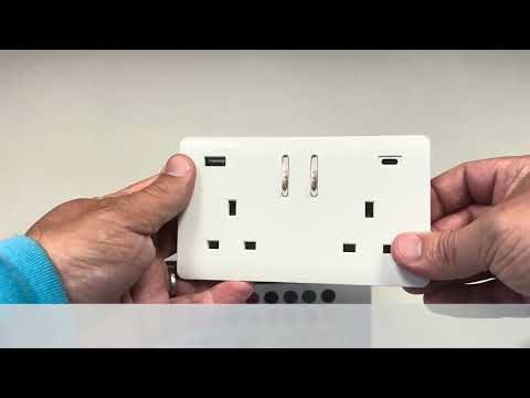 The Trendi Switch range of 2 gang 13 amp USB plug sockets comprise of a sleek chrome rocker switch on a "screwless" plate displaying the complete colour of the products. This is supported by a back frame that houses the screw holes & module for the product to be installed into compatible back boxes and wiring.