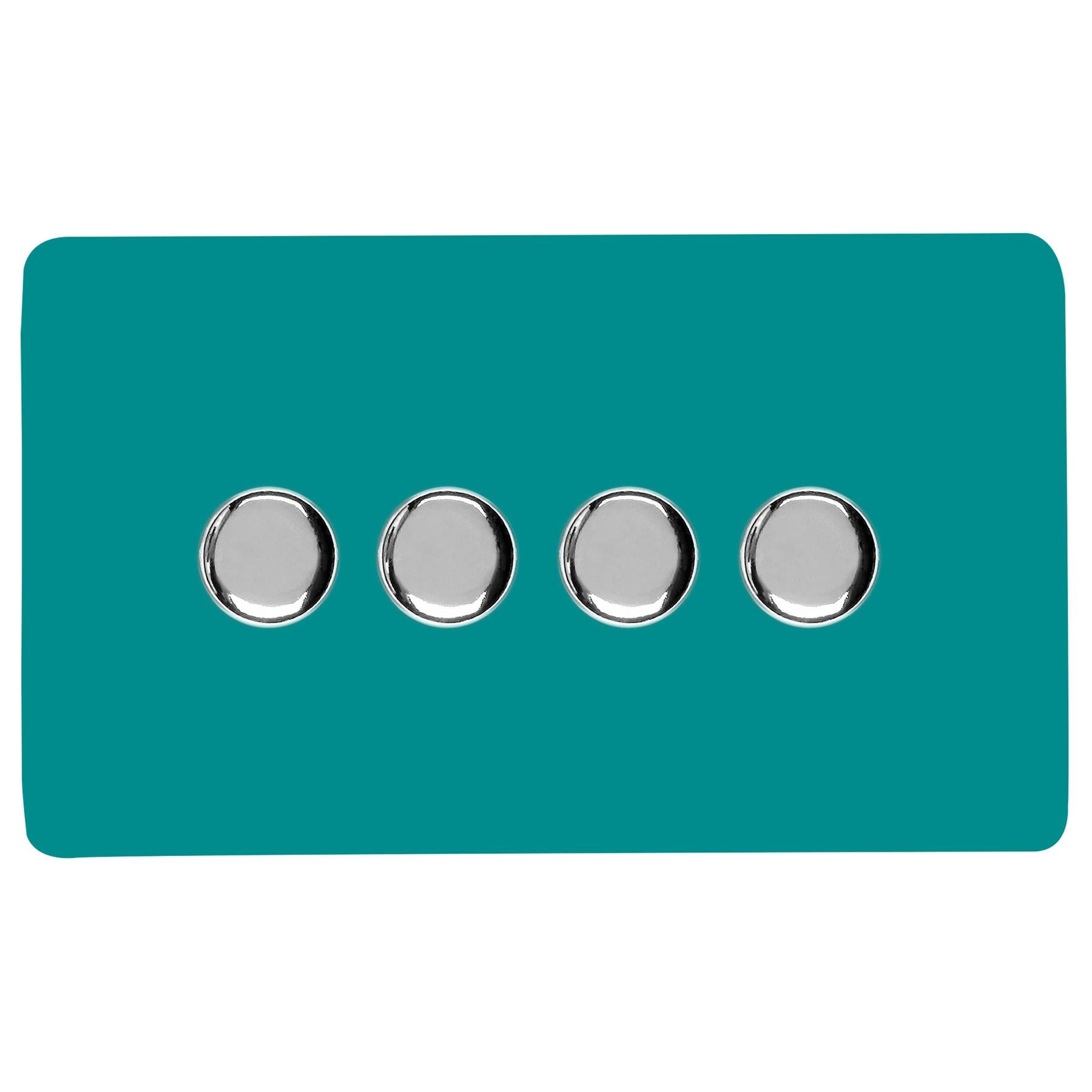 Trendi 4 Gang 2 Way 240V 100w LED Dimmer Screwless Raised Front Plate Plastic Artistic Modern Glossy 10 Amp Chrome Single Electrical Wall Light Switch in Bright Teal - ART-4LDMBT