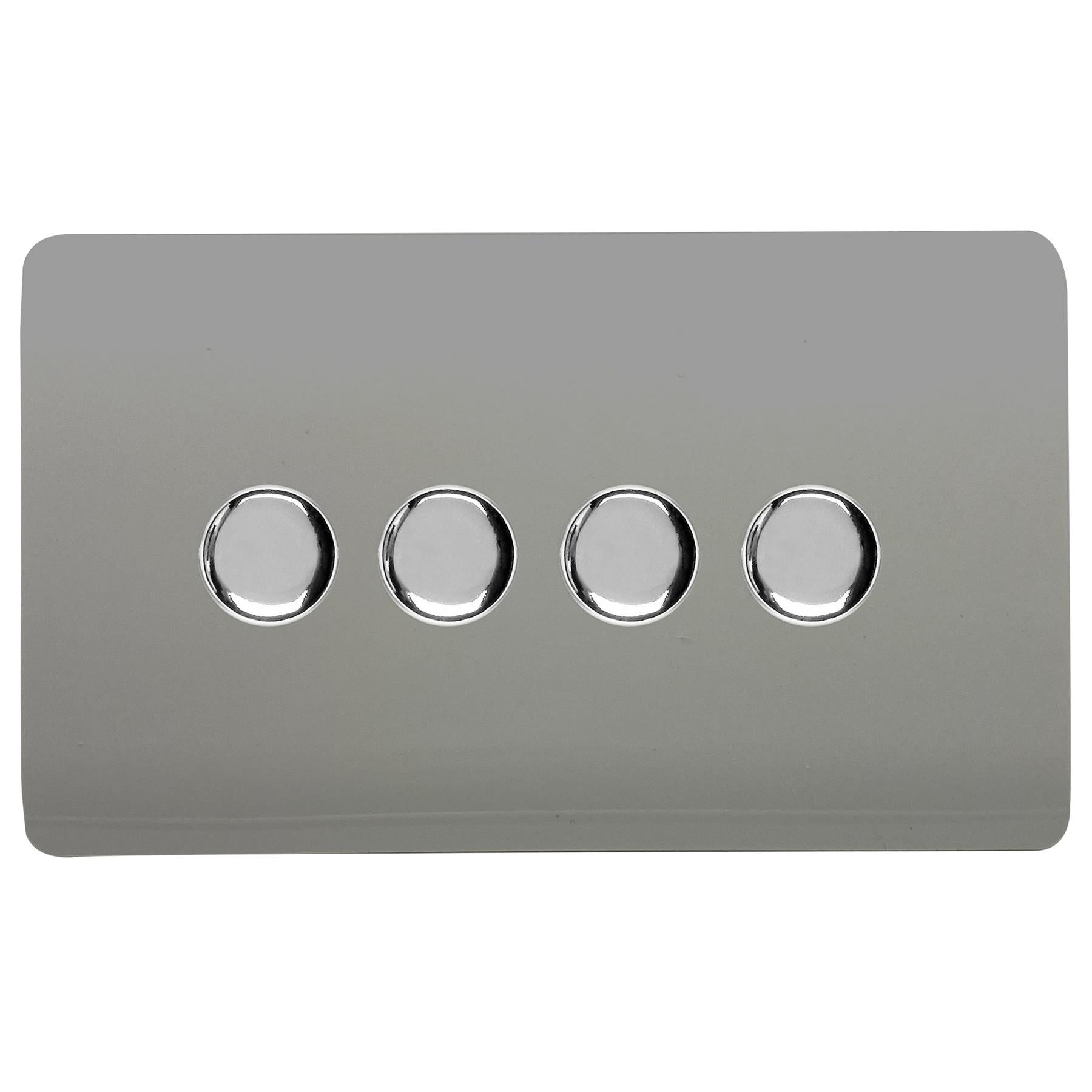 Trendi 4 Gang 2 Way 240V 100w LED Dimmer Screwless Raised Front Plate Plastic Artistic Modern Glossy 10 Amp Chrome Single Electrical Wall Light Switch in Light Grey - ART-4LDMLG
