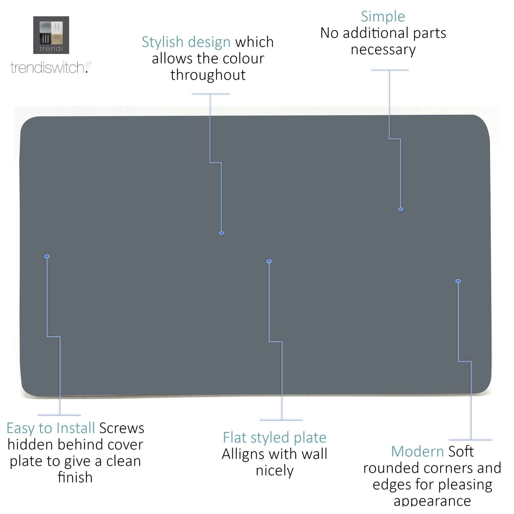 The Trendi Switch range of blanking plates comprise of a "screwless" plate displaying the complete colour of the products. This is supported by a back frame that houses the screw holes for the product to be installed into compatible back boxes.